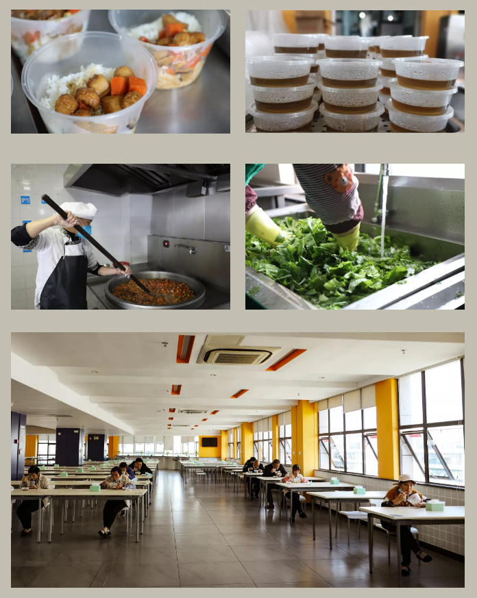 食堂工作人员自己全面做好防控措施的同时,,,严把原材料关,,,保证饭菜制作全过程安全、、卫生。。午餐采取各楼层配餐方式,,谢绝外部人员进入用餐、、、杜绝外卖送餐。。在餐厅用餐者需二次量体温,,,,隔位入座用餐。。